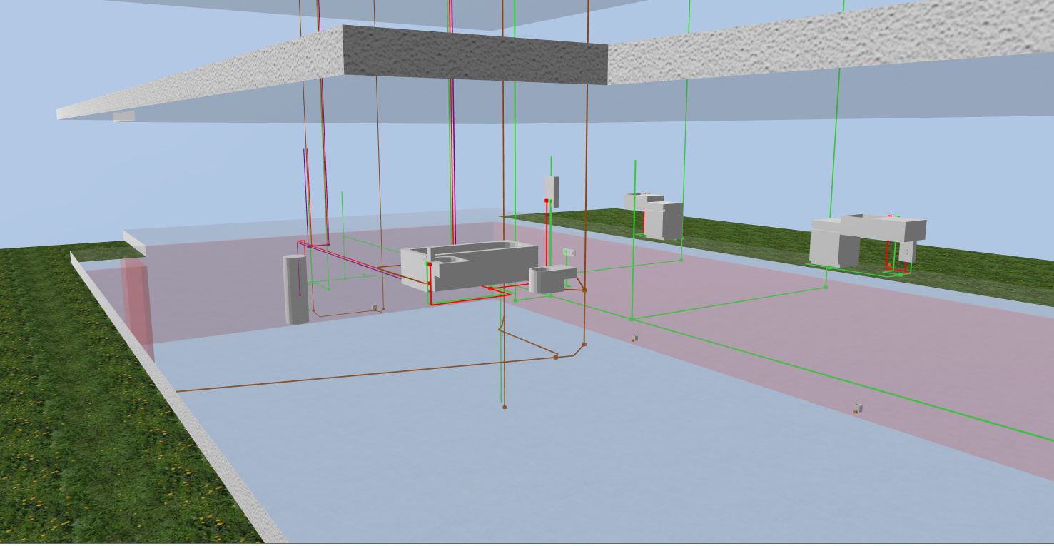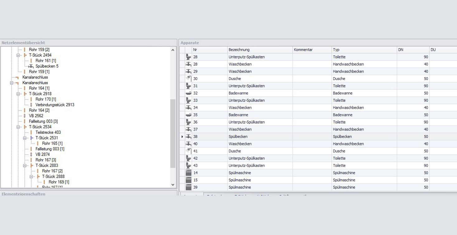 Zeichnung und Anbindung der Abwasserrohrleitungen im HottCAD. |